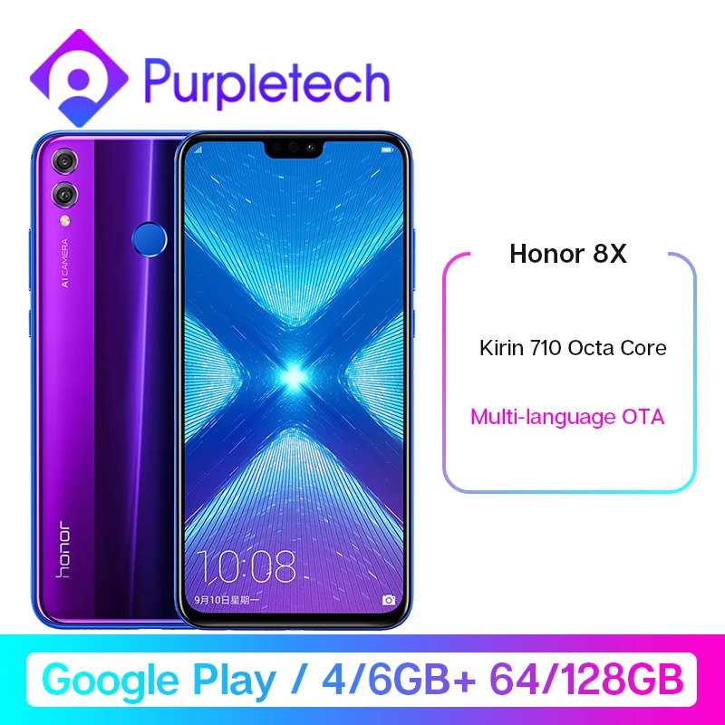 OVERVIEW Product Google Play Honor 8X 8 X Smartphone Global Rom 4GRAM 64G/128G Kirin 710 Octa Core 6.5'' 20MP Dual R